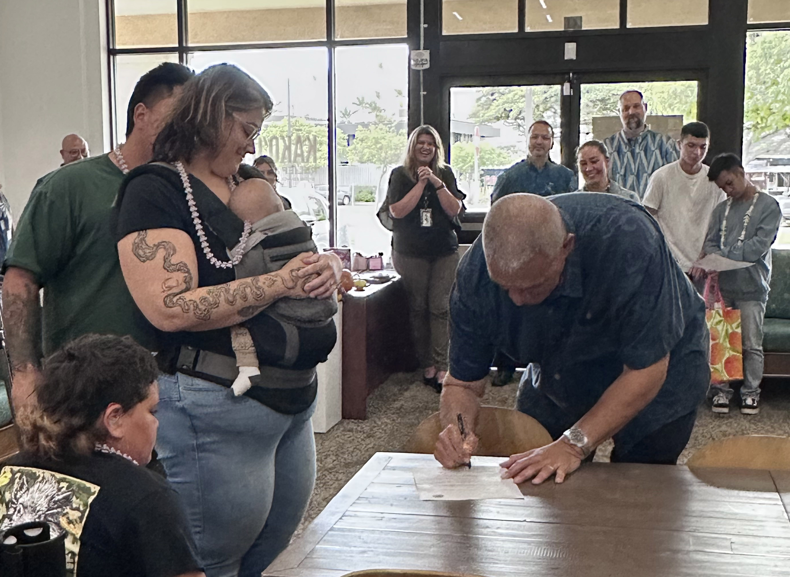 Five families gathered at the Kākoʻo Maui Relief & Aid Services Center in Kahului this morning to receive and sign the letters from County of Maui leaders. Another three recently signed the documents.