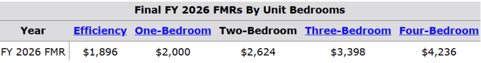 Q. What are the 2026 HUD Fair Market Rental Rates?